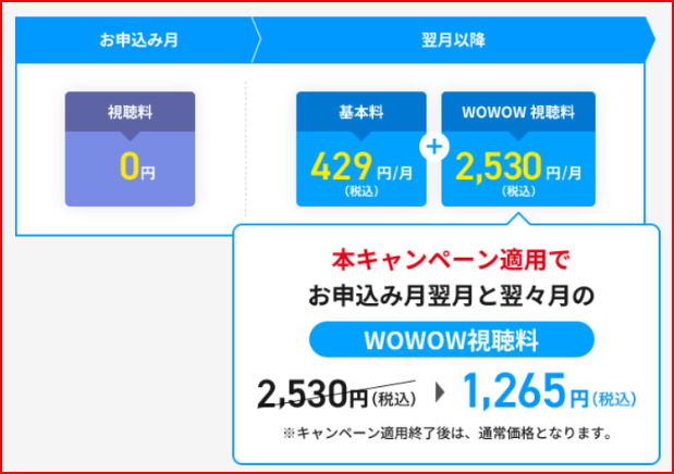 | WOWOW直加入 | 2,530円 | 2,530円 | 2,530円 | 2,530円 |